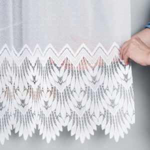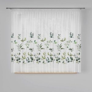 <h1 Firanka woalowa w liściasty wzór z ołowianką – wysokość 157 cm Nadaj swojemu wnętrzu lekkości i elegancji dzięki delikatnej firance woalowej ozdobionej subtelnym liściastym wzorem. Dzięki wysokiej transparentności materiału, firanka pięknie przepuszcza światło, tworząc przyjemną atmosferę w pomieszczeniu. Cechy produktu: ✔ Wysokość: 157 cm ✔ Raport poziomy: 50 cm