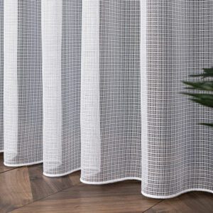 NESTIA Firanka – Geometryczna Siatka, Wysokość 305 cm Dodaj elegancji i lekkości swojemu wnętrzu dzięki firanie NESTIA o nowoczesnej strukturze luźnej, geometrycznej siatki. Wykonana z wysokiej jakości 100% poliestru, jest trwała i łatwa w pielęgnacji. Cechy produktu: ✅ Wysokość: 305 cm ✅ Skład: 100% Poliester ✅ Gramatura: 132 g/m² ✅