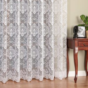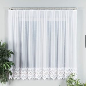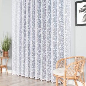 Firanka żakardowa 180 cm – elegancja i klasyka w Twoim wnętrzu Dodaj wyjątkowy akcent do swojego wnętrza dzięki firance żakardowej o wysokości 180 cm. Delikatny wzór umieszczony na samym dole nadaje jej subtelny, dekoracyjny charakter, idealnie komponując się zarówno z klasycznymi, jak i nowoczesnymi aranżacjami. Cechy produktu: ✔ Materiał: 100%