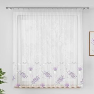 <h1 Firanka Lawenda z ołowianką – WOAL, wysokość 157 cm Lekka i elegancka firanka lawenda na podkładzie WOAL z ołowianką to doskonałe rozwiązanie do wnętrz, które wymagają subtelnej dekoracji okiennej. Dzięki zastosowaniu delikatnego woalu firanka pięknie się układa, a wszyta ołowianka zapewnia jej idealne przyleganie i estetyczny wygląd. Cechy produktu: