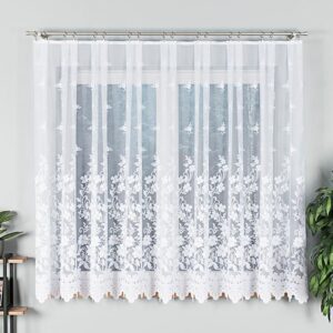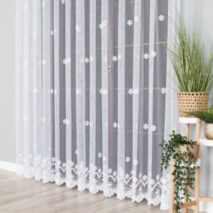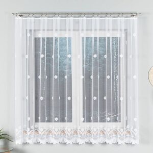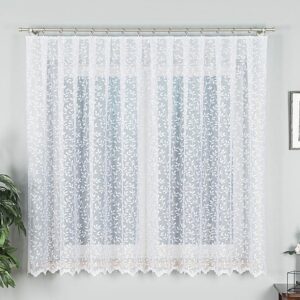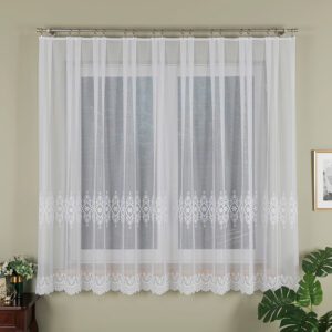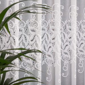 Firanka żakardowa 180 cm – lekkość i elegancja dla Twojego wnętrza Firanka żakardowa o wysokości 180 cm to doskonały wybór dla osób ceniących subtelne zdobienia i jasne wnętrza. Delikatny wzór na całej powierzchni dodaje dekoracyjnego charakteru, a lekka, przewiewna tkanina pięknie przepuszcza światło, rozświetlając pomieszczenie i tworząc przytulną atmosferę. Cechy