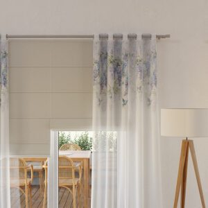 Firanka ESTI to elegancka dekoracja okienna, która dzięki lekkiej, woalowej tkaninie subtelnie przepuszcza światło, tworząc przyjemną i jasną atmosferę w pomieszczeniu. Wzór umieszczony w górnej części dodaje firanie wyjątkowego charakteru, a wszyta ołowianka zapewnia jej piękne, naturalne układanie się.