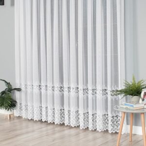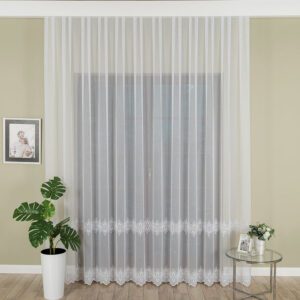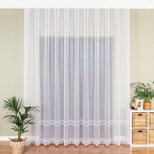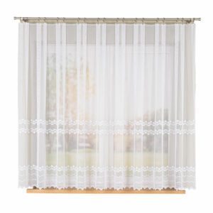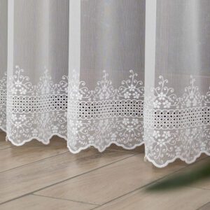 Firanka haftowana z aplikacją gipiurową – biały kolor, wys. 160 cm