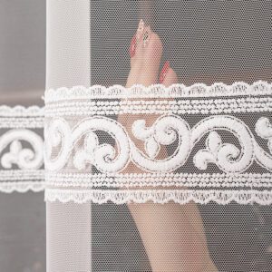 Dodaj elegancji i lekkości swojemu wnętrzu dzięki firance z aplikacją na markizecie. Wykonana z wysokiej jakości 100% poliestru, cechuje się dużą przepuszczalnością światła, co sprawia, że pomieszczenie pozostaje jasne i przytulne. Firana posiada dwa pasy gipiury.