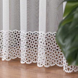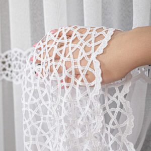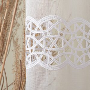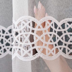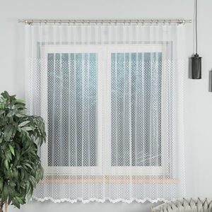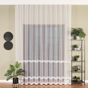 Firanka z aplikacją gipiurową na markizecie – biały wzór pasowy, wys. 290 cm