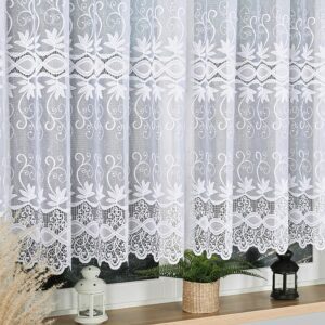 Firanka doskonale sprawdzi się w salonie, sypialni, kuchni czy jadalni, nadając wnętrzu elegancki wygląd i przytulną atmosferę.