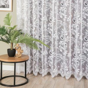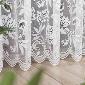 Stylowa i elegancka firanka żakardowa to doskonały wybór dla osób ceniących klasyczne dekoracje okienne. Wykonana z wysokiej jakości poliestru, cechuje się trwałością i łatwością w pielęgnacji. Dzięki delikatnej strukturze materiału firanka przepuszcza dużo światła, rozjaśniając wnętrze i nadając mu lekkości.